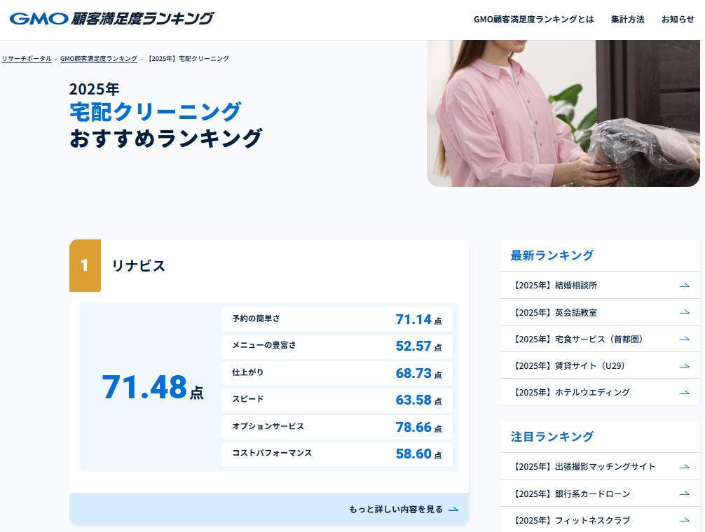 https://rinavis.com/ )はこの度、GMOリサーチ&AI株式会社が運営する「GMO顧客満足度ランキング」の2025年「宅配クリーニング 顧客満足度調査」において、顧客満足度 総合ランキング第1位を獲得したことをお知らせします。