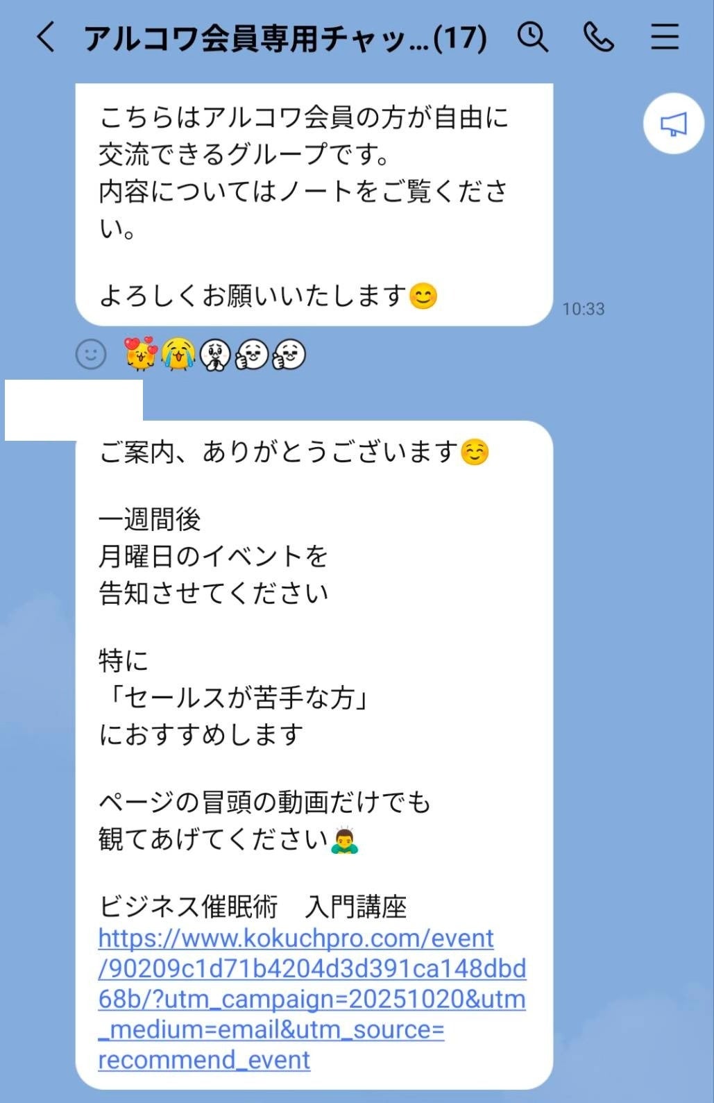 イベント告知に特に活用でき、アルコワ会員は積極的でフットワークが軽い方が多いので、申込につながりやすいです。