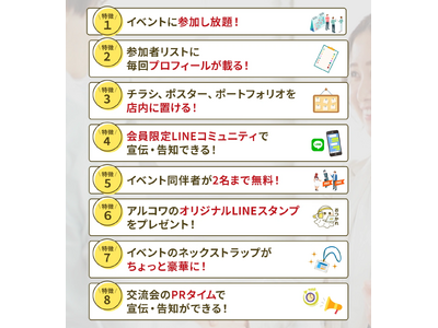アルコワ会員は、定額でイベントに参加できたり、自分の活動を知ってもらうのに効果的な特別プランです。