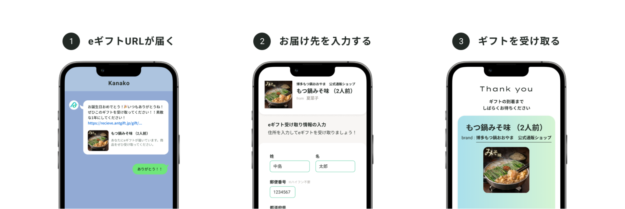 eギフトURLから住所を入力いただくだけで対象商品が届きます