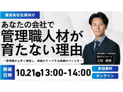 2025年10月21日(火)、運送会社・物流会社の経営者の方を対象にした「After2024年問題を生き残る管理職育成のポイントセミナー」をオンラインで開催しました。
