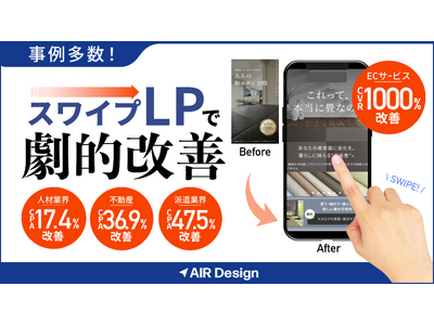 Web広告の成果を改善する「AIR Design」が提供する「スワイプLP」の導入事例を公開しました。不動産・人材・ECなど複数の業界で、従来の縦長LPと比較してCPAやCVRを大幅に改善しました。