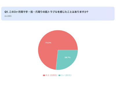 その結果、73.3%の方が「ある」と回答し、多くの方が手肌の不調を実感していることが明らかになりました。