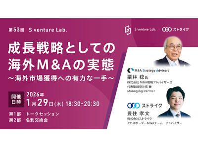 株式会社ストライク(本社:東京都千代田区、代表取締役社長:荒井邦彦)は2026年1月29日(木)、オープンイノベーションイベント第53回「S venture Lab.」を開催いたします。