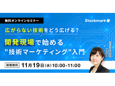 製造業向けAIエージェント『Aconnect』を提供するストックマーク株式会社(以下、「当社」)はオンラインセミナー『広がらない技術をどう広げる? 開発現場で始める"技術マーケティング"入門』を11月19日(水) に開催致します。