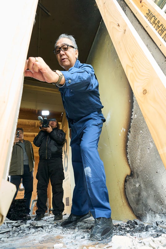 木造建築防耐火研究の第一人者も実験立ち合い。