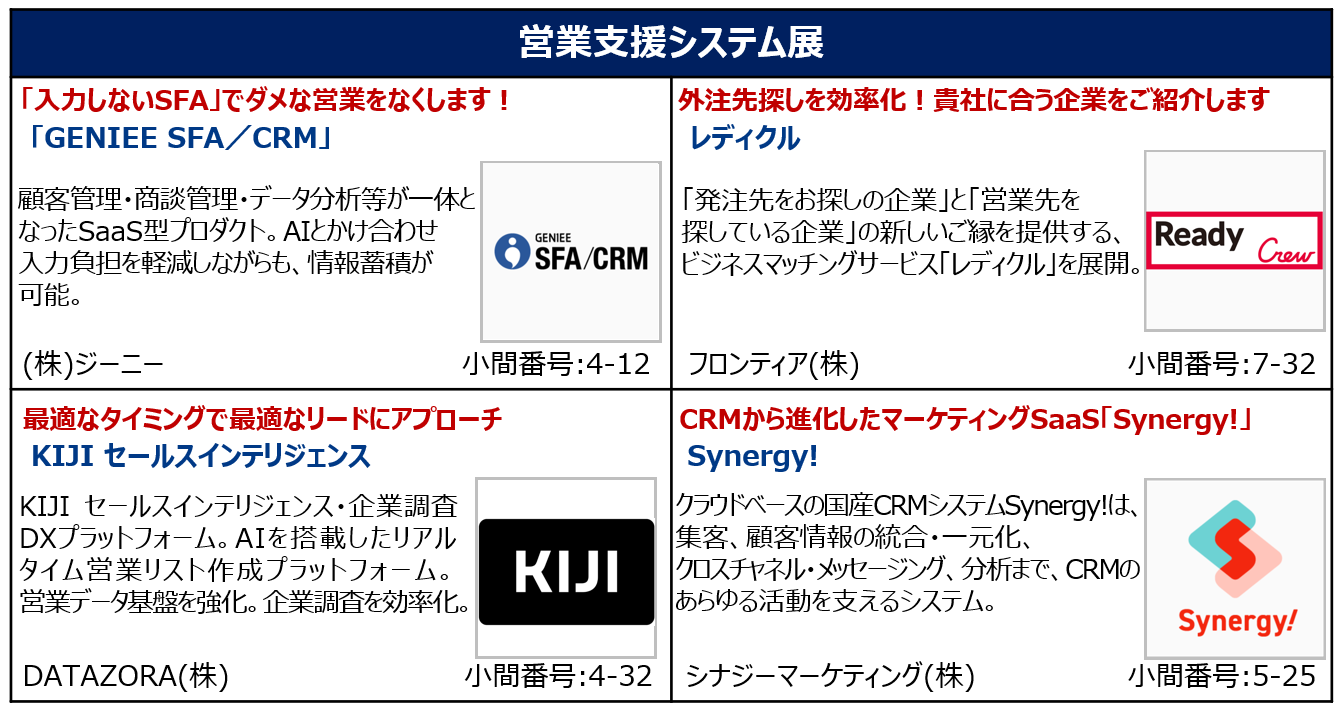 このほかにも、売上アップ・販売促進・DX推進のための製品・サービスが多数出展!