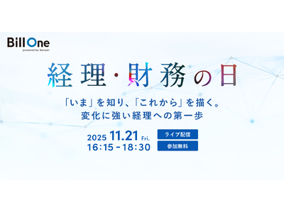 Sansan株式会社が提供する経理DXサービス「Bill One」は、ビジネスイベント「経理・財務の日~『いま』を知り、『これから』を描く。変化に強い経理への第一歩~」を、2025年11月21日(金)16:15よりライブ配信いたします。
