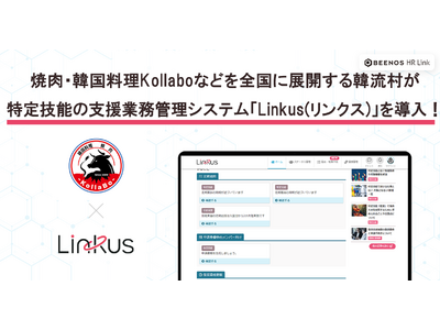 BEENOS株式会社の連結子会社で、特定技能雇用を包括支援するBEENOS HR Link株式会社(以下「BEENOS HR Link」)が運営する特定技能の支援業務管理システム「Linkus(リンクス)」は、焼肉・韓国料理Kollaboなどを展開する株式会社韓流村(本社: 東京都港区、代表取締役:任 和彬)に導入されました。