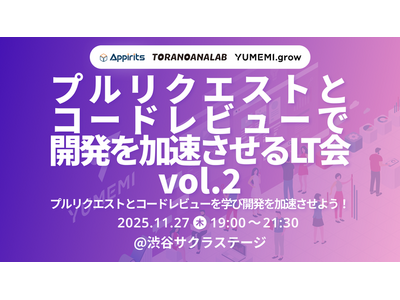 株式会社アピリッツは、虎の穴ラボ株式会社、株式会社ゆめみとの共催により、「プルリクエストとコードレビューで開発を加速させるLT会 vol.2」を2025年11月27日(木)に開催いたします。