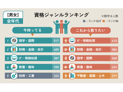 本調査は、20~60代の男女1,911名を対象に実施し、現在保有している資格ジャンルと今後取得したい資格ジャンルを比較し、資格ニーズの変化や社会的背景を分析したものです。