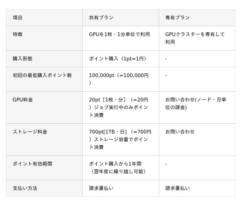 ポイント制導入 GPU1分・1枚単位の課金でクラスター構成環境を提供