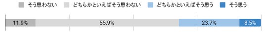 「そう思う」「どちらかといえばそう思う」は合わせて約32%となり、多くが満足度の低下は感じていないことが分かりました。