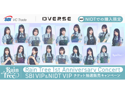 SBIホールディングス株式会社(本社:東京都港区、代表取締役会長兼社長:北尾 吉孝)の連結子会社で暗号資産交換業を営むSBI VCトレード株式会社(本社:東京都港区、代表取締役社長:近藤 智彦、以下「当社」)は、ブロックチェーン技術とメタバースを利用した活動領域の拡大を目指すアイドルグループを創造する株式会社オーバース(本社:東京都港区、代表取締役:奥秋 淳、以下「オーバース」)と協働し、2025年11月17日(月)より、「【SBI VCトレード×オーバース】NIDTでの購入限定『Rain Tree 1st Anniversary Concert』SBI VIP&NIDT VIPチケット抽選販売キャンペーン」を実施することをお知らせいたします。