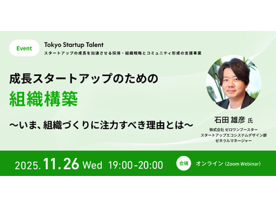 東京都は、スタートアップの成長促進に向けた、採用・組織構築を含む人事・人材に関する課題解決を目的とした「Tokyo Startup Talent」事業にて第8回イベントの参加者を募集しています