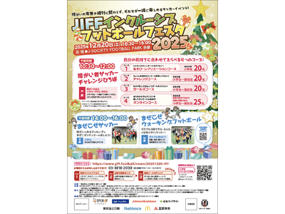 一般社団法人日本障がい者サッカー連盟(JIFF/会長:北澤豪)は、2025年12月20日(土)にJ-SOCIETY FOOTBALL PARK 多摩(東京都多摩市)およびオンラインで「JIFFインクルーシブフットボールフェスタ2025」を開催します。本イベントは、”障がいの有無に関わらず混ざり合える共生社会の実現に向け、サッカーを通じて障がい児・者と健常児・者の相互理解の機会をつくる”理念に則り、JIFFが設立された初年度(2016年)から毎年12月に開催、今回で10回目となります。プログラム内、障がいのある子どもと障がい者サッカーとの出会いの機会を創出するための「障がい者サッカーチャレンジひろば」では、昨年に引き続きガールズコースを設置し、女の子も参加しやすいイベントづくりを目指します。また、今年新たに設置するオンラインコースでは、重度の肢体不自由の子どもや移動に困難のある子どもを対象にしたプログラムを実施します。