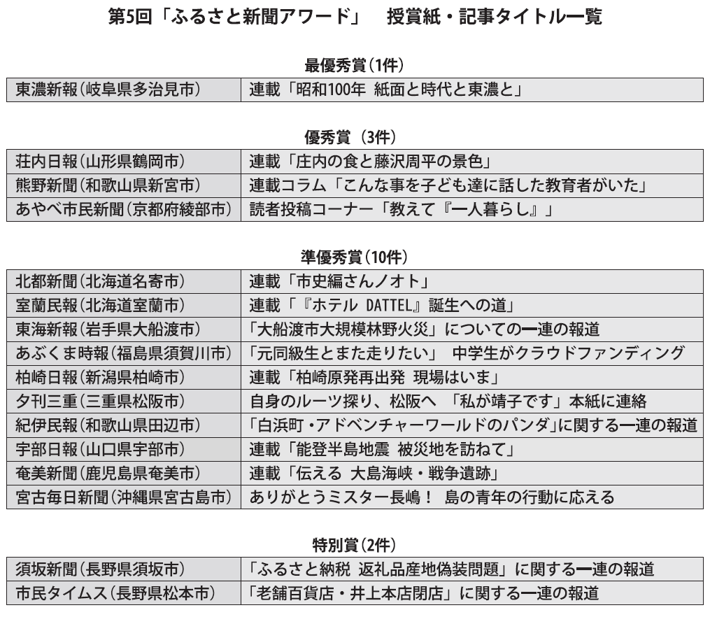第5回「ふるさと新聞アワード」最優秀賞の記事について