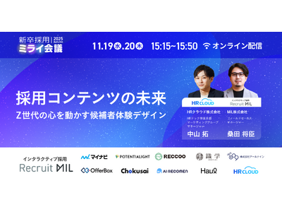 インタラクティブ採用で企業と学生の「相互理解」を支援するMIL株式会社(本社:東京都新宿区、代表取締役CEO:光岡 敦、以下 MIL)は、2025年11月19日(水)・20日(木)に開催するオンラインカンファレンス「新卒採用ミライ会議 2025 秋」において、HRクラウド株式会社との特別対談セッションを開催します。