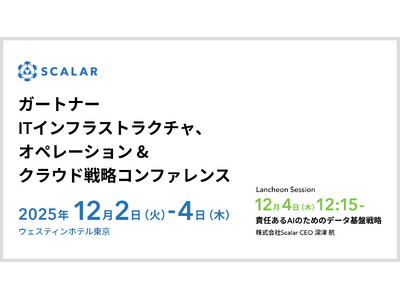 株式会社Scalar(本社:東京都、代表取締役CEO:深津航、代表取締役CTO:山田浩之、以下「Scalar」)は、2025年12月に開催される「ガートナー ITインフラストラクチャ、オペレーション & クラウド戦略コンファレンス」に出展し、展示ブースの出展およびランチョンセッションでの講演を実施いたします。