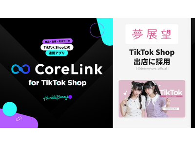 株式会社ハックルベリー(東京都世田谷区、代表取締役社長:安藤 祐輔、以下「ハックルベリー」)が提供する、TikTok Shop連携専用コネクタ「CoreLink for TikTok Shop」が、夢展望株式会社(本社:大阪府池田市、代 表取締役社長:津田 茂寿、以下「夢展望」という)のTikTok Shop出店に際して採用されましたことをお知らせいたします。
