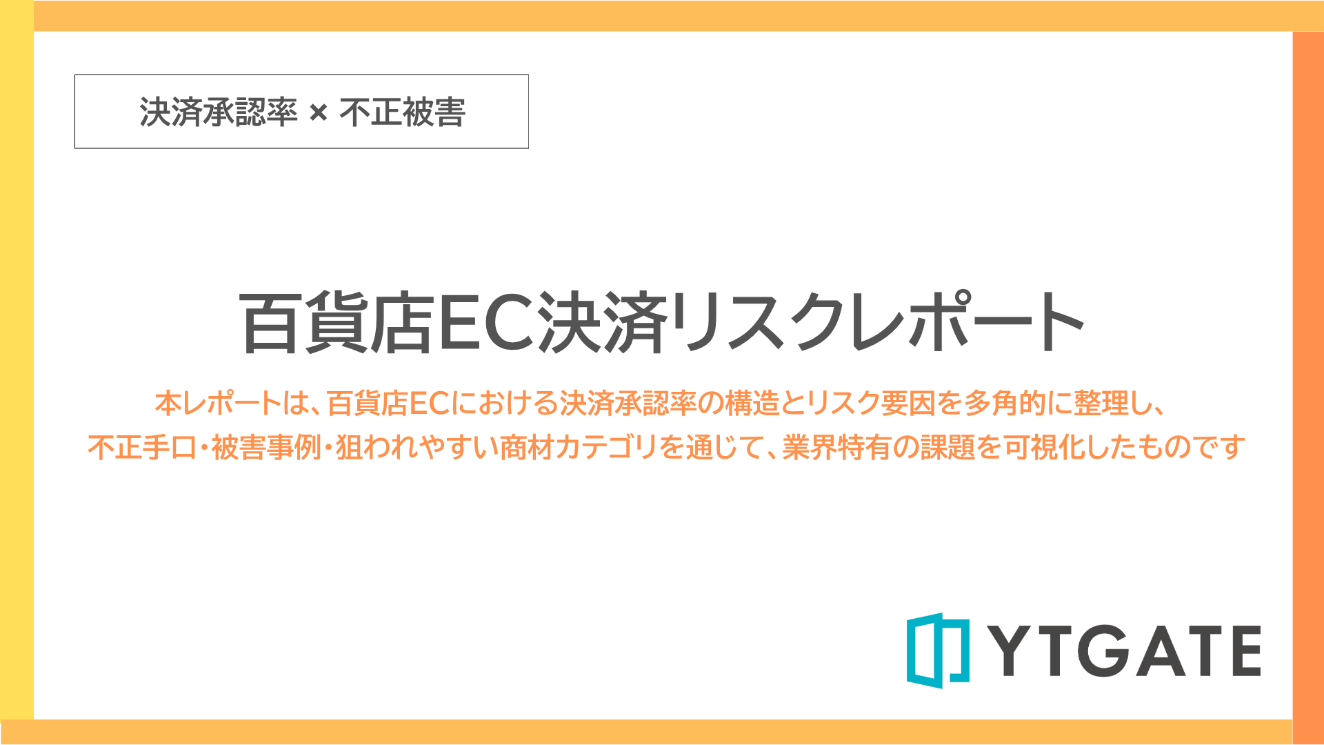 株式会社YTGATE(本社:東京都中央区、代表取締役:高橋祐太郎、以下「YTGATE」)は、これまで蓄積してきた決済承認率改善の支援実績とデータ分析に基づき、「百貨店EC決済リスクレポート 2025」を公開しました。