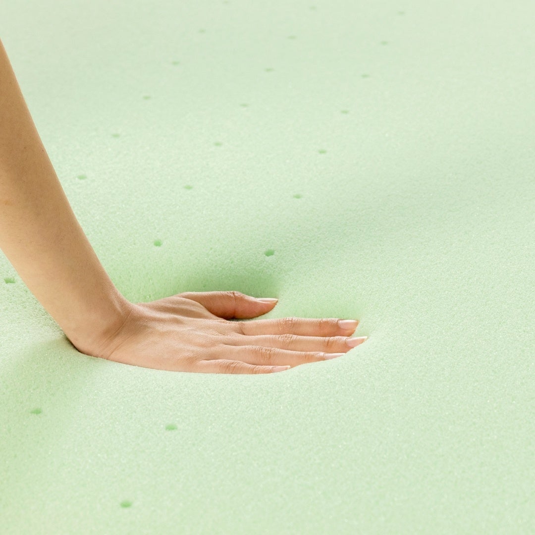 天然の緑茶成分と活性炭成分を配合したメモリーフォームのトッパー