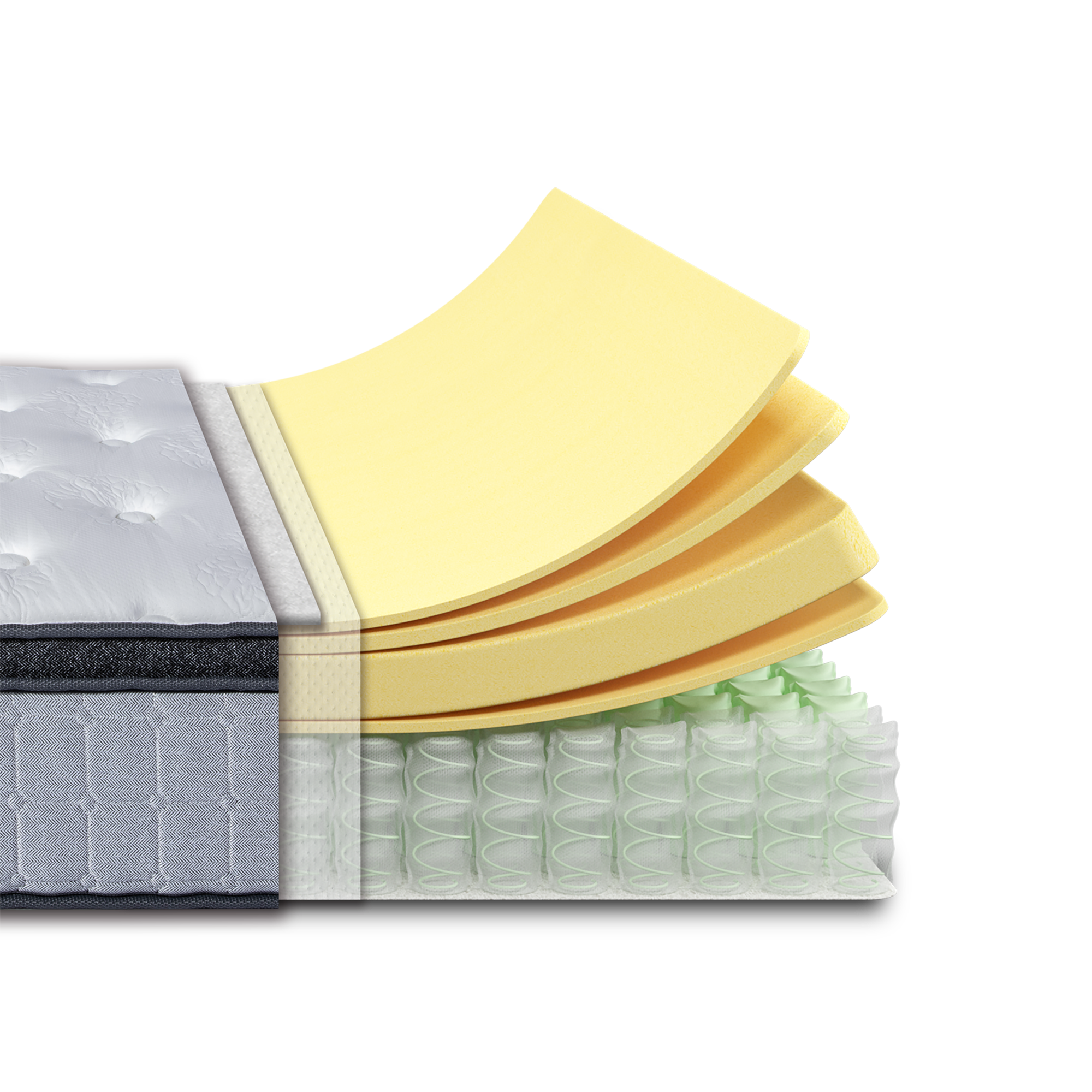 体を優しく包み込む、ZINUS定番のベースフォームと荷重を"点"で捉えるポケットコイルスプリングの組み合わせにより快適な体圧分散を実現し、心地よい睡眠へと誘います。