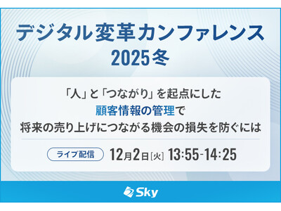 Sky株式会社は、2025年12月2日(火)にオンラインで開催される、株式会社リバイバル・マネジメント・フォーラム事務局主催の「デジタル変革カンファレンス2025冬」に協賛いたします。