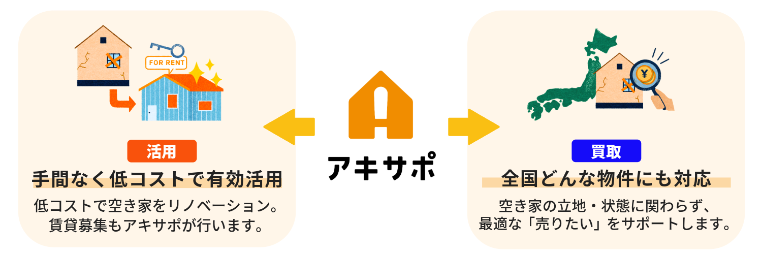 「アキサポの買取」では、「アキサポ」が直接空き家を買い受ける買取サービスを展開しております。