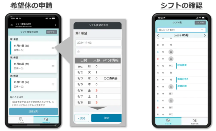 1. スマートフォンから希望休日の申請や、自分のシフト予定を確認できる