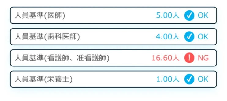 門職の配置基準のチェックなど、医療現場特有の課題に対応可能となりました。