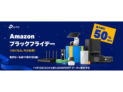 世界170か国以上でネットワーク機器およびスマートホーム製品を展開するTP-Linkグループ(本社:米国カリフォルニア州アーバイン)の日本法人、ティーピーリンクジャパン株式会社(本社:東京都千代田区外神田)は、11月21日(金)より開始される“Amazon ブラックフライデー先行セール”、“Amazon ブラックフライデー”に参加いたします。