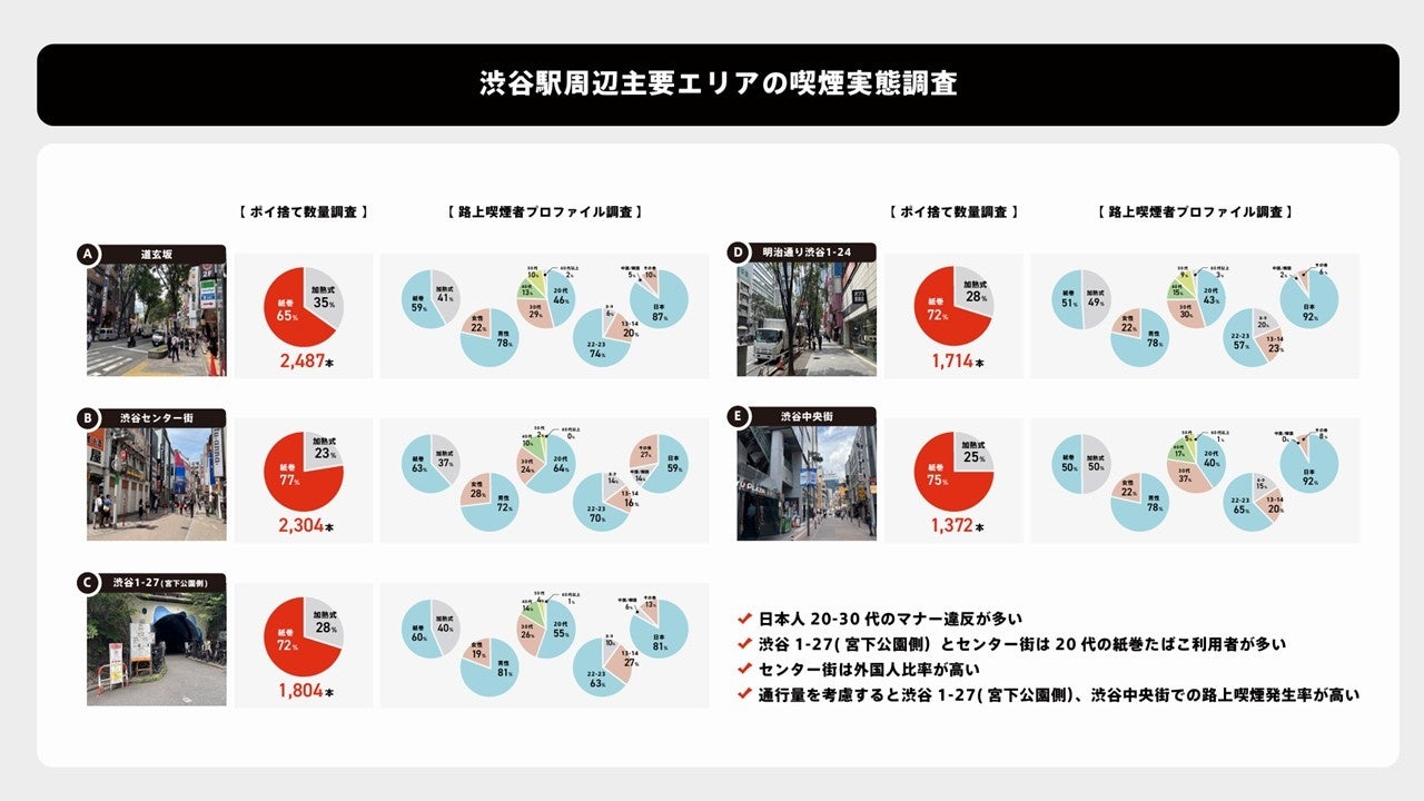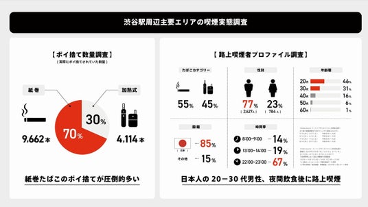 ■「渋谷駅周辺主要エリアの喫煙実態調査」結果の報告:「喫煙所難民」の実態が明らかに