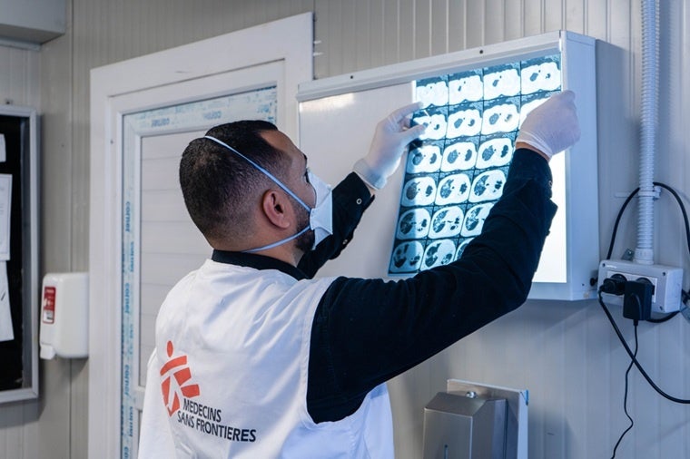 リビアで結核患者のX線写真を確認するMSFの医師 (C) Omar Rashid/MSF