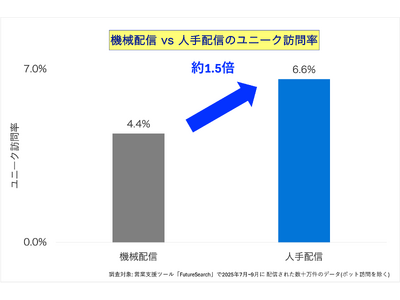 人手を介した高いユニーク訪問率機械による自動配信のユニーク訪問率は4.4%ですが、人手による配信では6.6%と、約1.5倍の効果が確認されました。
