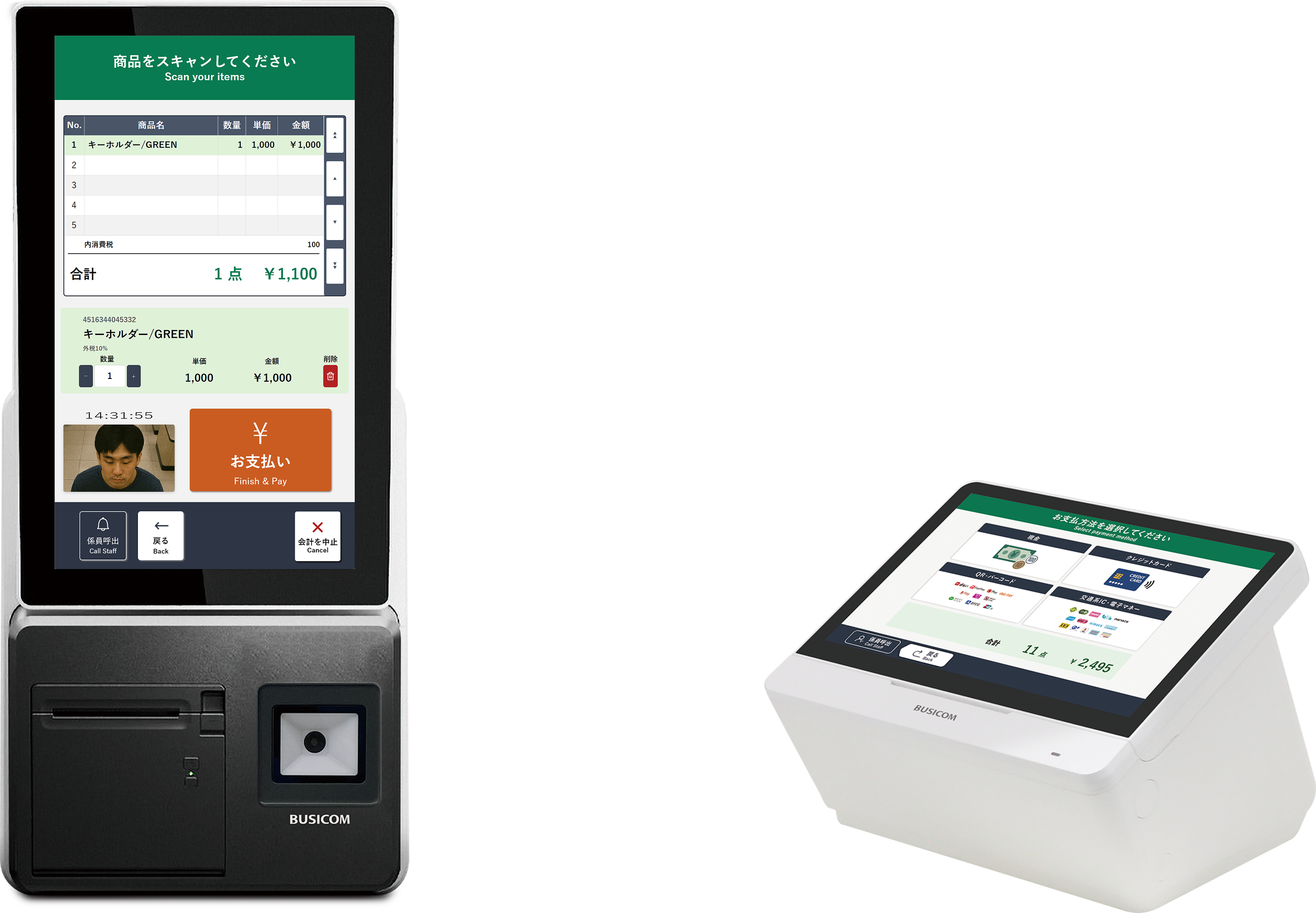・QRコードリーダー内蔵でキャッシュレス決済に対応
