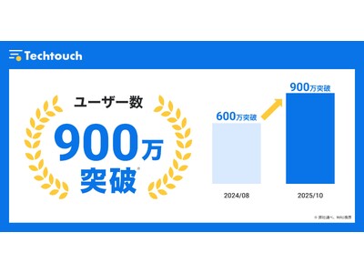 AI型デジタルアダプションプラットフォーム(DAP)国内シェアNo.1のテックタッチ株式会社が開発・提供する「テックタッチ」の国内外ユーザー数が、900万人を突破したことをお知らせします。
