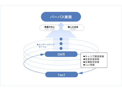 パーパスの実現に向けては、社員全員の目指す方向性が一致していることが必要不可欠になります。トップからミドル、メンバーに至る全社員の目標を連携させるために、OKRを導入します。このOKRの導入により、社員一人ひとりが主体的に目標を設定し、目標達成に向けて仕事に取り組むことが期待されます。自身が決めたゴールに向かって、仕事にやりがいを感じながら成長してもらうことが導入目的の1つです。