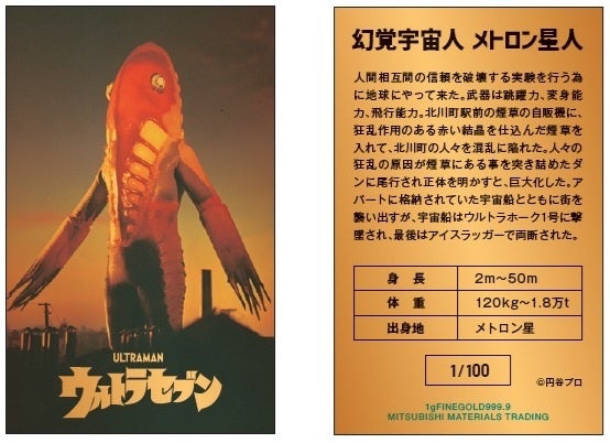 株式会社ニッポン放送プロジェクトは、『ウルトラセブン』の人気キャラクター、ウルトラセブン、キングジョー、メトロン星人を1gの純金に印刷した超豪華な「純金プレート」を発売いたします。