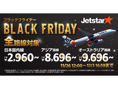 ジェットスター・ジャパン株式会社、ジェットスター航空のジェットスターグループ2社は、2025年11月26日(水)より、日本国内線・日本発着国際線の全路線を対象とした「ブラックフライデー」を開催いたします。