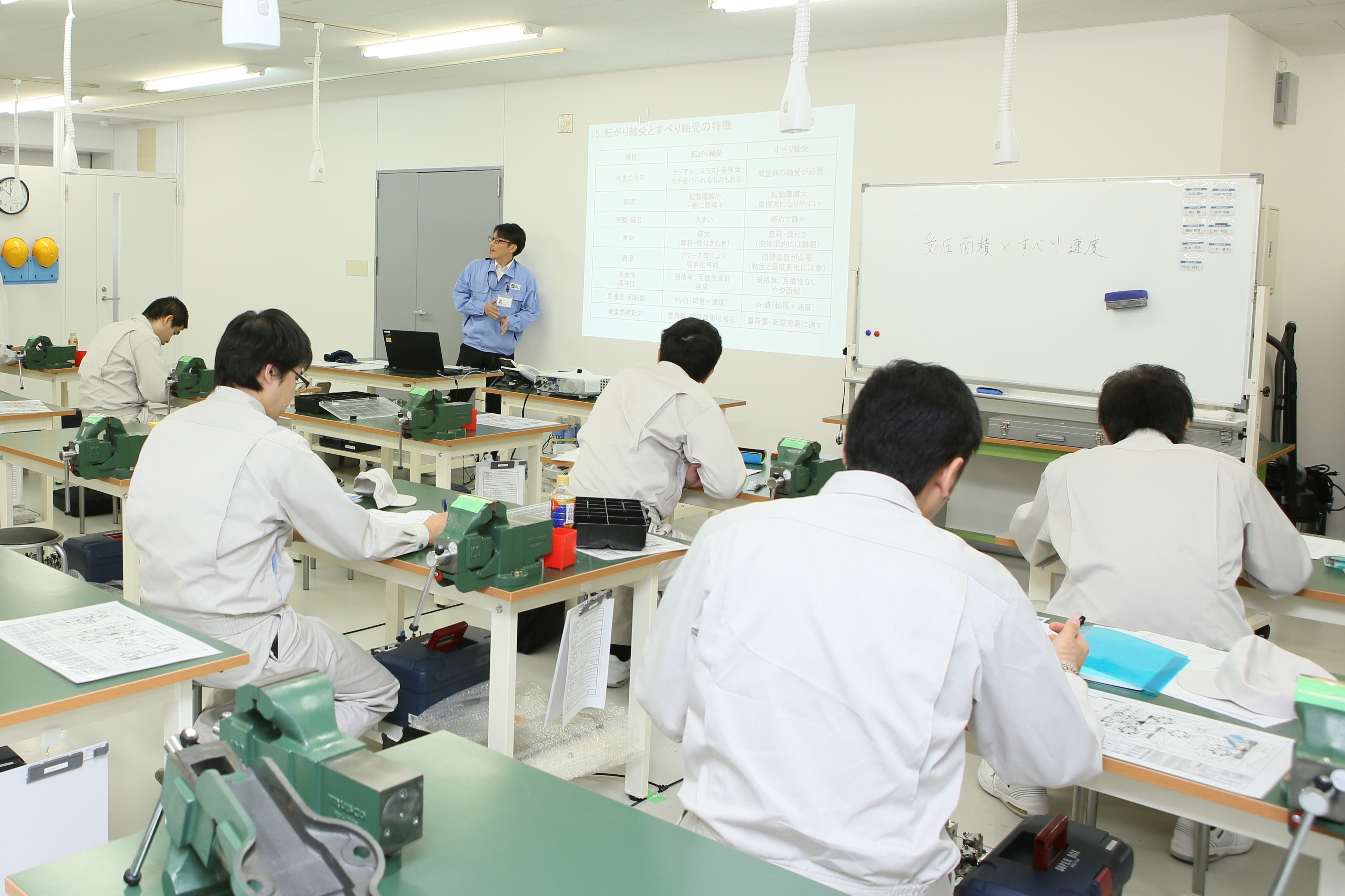 同センターでは主に未経験者を対象とした、保全スタンダード研修(機械・電気)を実施。社会人としてのモラルや安全衛生研修をはじめ、機械系(製図、軸受、潤滑等)、電気系(基礎、測定器、モーター、PLC制御等)のオリジナルカリキュラムに沿って座学と実機を使用した実践的な研修で設備保全エンジニアになるための専門技術を身につけることができます。