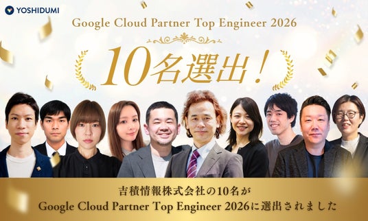 吉積情報株式会社(本社:東京都千代田区、代表取締役:秋田 晴通)は、この度 「Google Cloud Partner Top Engineer」アワードプログラムにおきまして、吉積情報株式会社、丹羽 国彦などの 10 名が Google Cloud Japan が高い技術力を持ったエンジニアを表彰するプログラムである 「 Google Cloud Partner Top Engineer 2026 」に選出されたことをお知らせします。