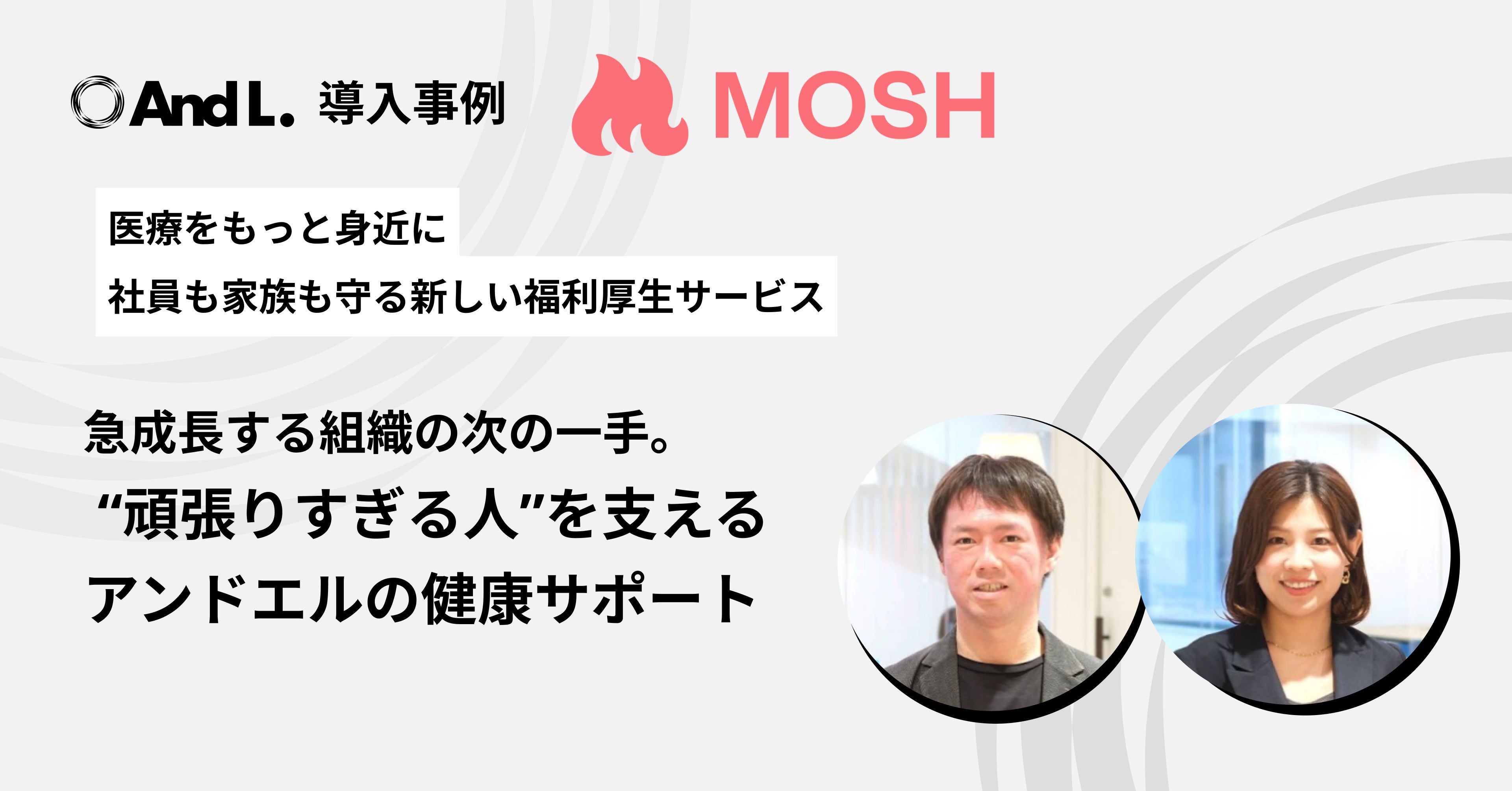 アンドエル株式会社(本社:東京都港区、代表取締役:古橋 智史)は、MOSH株式会社(本社:東京都渋谷区、代表取締役:籔 和弥、以下MOSH)に、法人向け健康支援サービス「アンドエルワーク」が導入されたことをお知らせします。