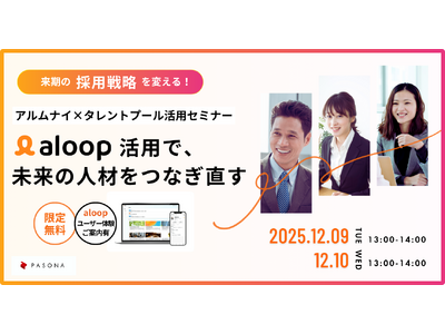 株式会社パソナ(本社:東京都千代田区、代表取締役社長 中尾慎太郎)は人材採用のご担当者様へ向けたウェビナー、「来期の採用戦略を変える!アルムナイ×タレントプール活用セミナー~aloop活用で、未来の人材をつなぎ直す~」を12月9日(火)、10日(水)に開催いたします。