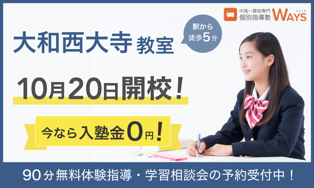 上記、奈良県の中高一貫校生および保護者様は、ぜひこの機会に中高一貫校専門 個別指導塾WAYS 大和西大寺への通塾をご検討ください。