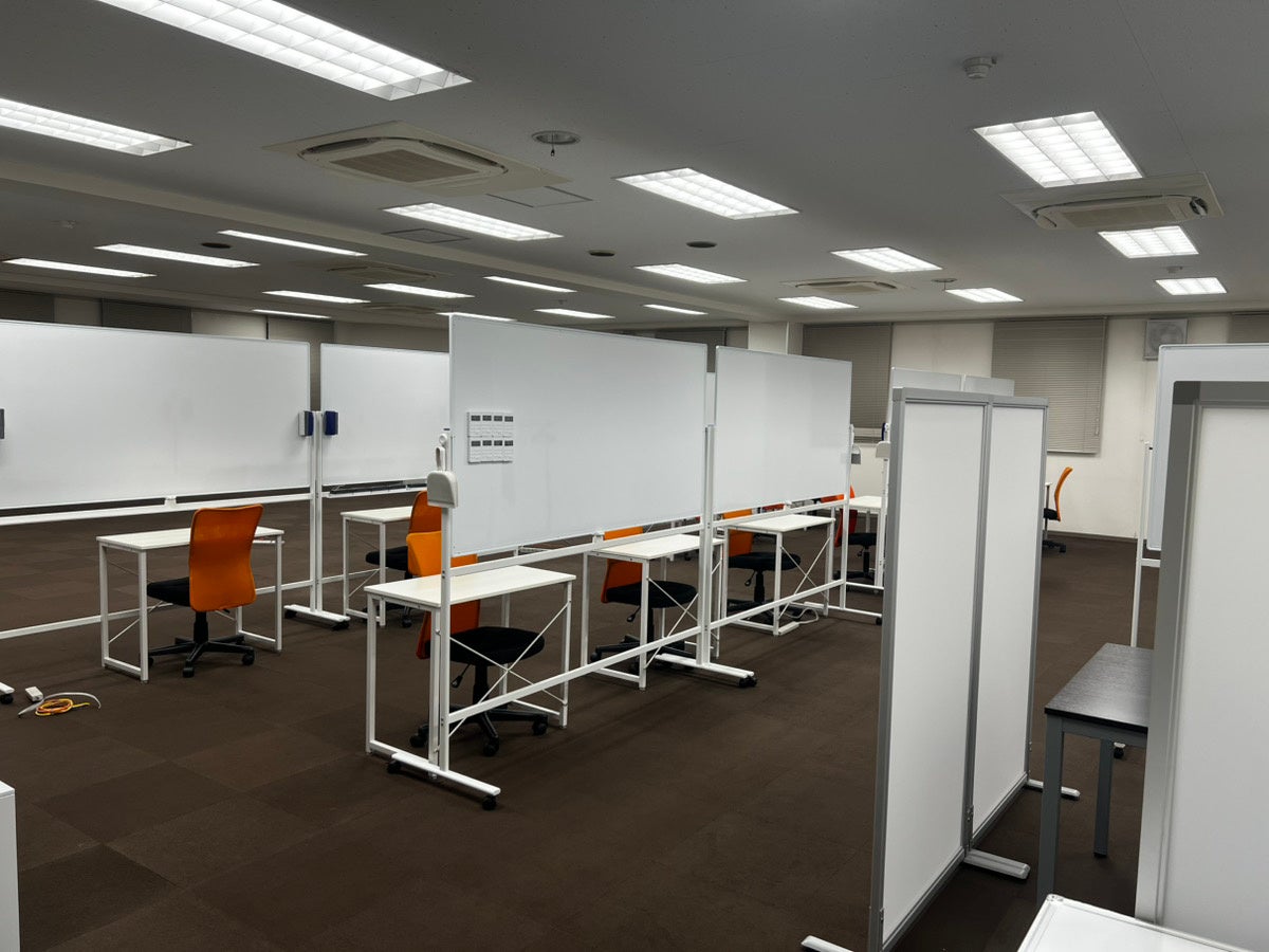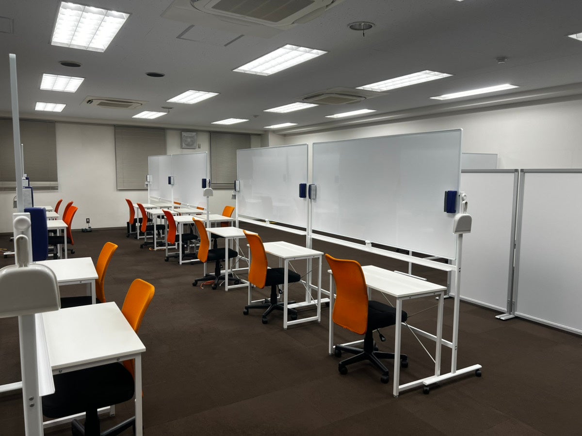 一人ひとりの学習スペースには大きなホワイトボードを完備。複雑な問題の思考過程を図解したり、目の前で要点を書き出しながら解説をするなど