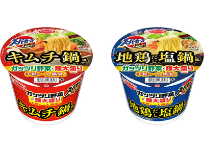 「スーパーカップ1.5倍 キムチ鍋風ラーメン/地鶏だし塩鍋風ラーメン」を新発売します。