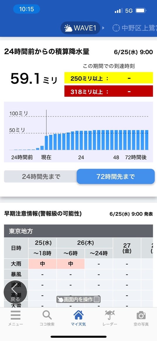 - 24時間の積算降水量(危険な降水量を把握)