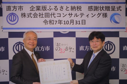 令和7年6月20日に株式会社田代コンサルティング様より企業版ふるさと納税を通じて100万円のご寄附をいただき、同年10月31日、大塚市長から同社へ感謝状が贈られました。