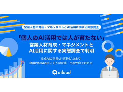 株式会社ailead(本社:東京都港区、代表取締役:杉山大幹)が提供する商談・面談解析クラウド「ailead(エーアイリード)」は、全国の営業職300名を対象に「営業人材の育成・マネジメントとAI活用に関する実態調査」を実施しました。